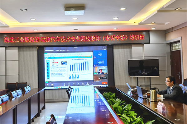 开班仪式后,教务处副处长赵艳杰以开元官网为例,讲解了《新能源汽车技术专业的建设和管理》。赵艳杰从石油危机、碳达峰碳中和、清洁能源所引发的汽车发展趋势和学校特色、产业背景、人才需求所要求的高职院校需要为地方经济社会发展服务两个方面,阐述了新能源汽车技术专业建设背景,并重点介绍了教学标准制定、课程体系构建、人才培养方案制定、专业条件建设、校企合作等专业建设方法和相关g管理过程。