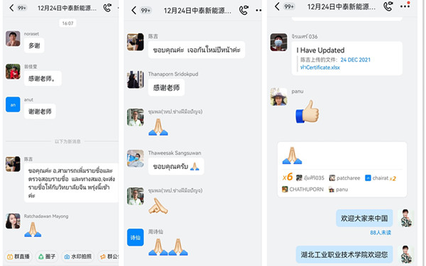 两位授课教师丰富的专业积累、生动的示范讲解和干练的授课风采给泰国参训教师留下了深刻的印象,引发了课后学习交流群的热烈讨论,激发了他们投身新能源汽车技术专业建设的愿望和到中国、到KY开元集团官网入口继续交流学习的热情。