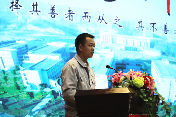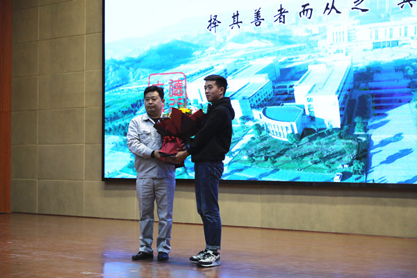“张龙老师身上所体现的爱岗敬业的职业道德、不断学习的工作态度和敢为人先的生活追求,是我们学习的榜样。”“在这个飞速发展的时代里有无数的诱惑,正因为此,我们更要坚定自己的内心,用一颗恒心去铸造出一颗匠心,像张龙老师一样,实现自己的理想和价值”......湖北亨运集团汽车销售服务有限公司员工、KY开元集团官网入口2018届毕业生吴永恒、KY开元集团官网入口2019级学生潘昌越分别以《我眼中的张龙老师》、《以热爱为初心 用恒心铸匠心》为题进行了主题宣讲,分享了学习张龙老师事迹的感想体悟。