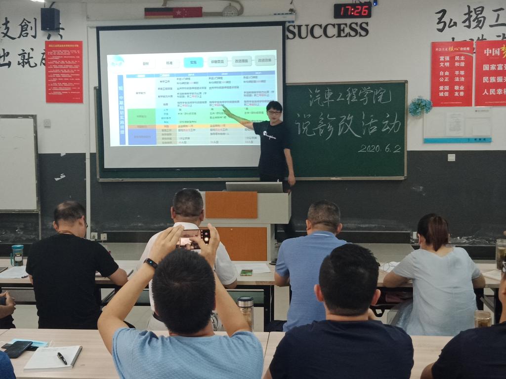 汽车检测与维修技术、新能源汽车技术、汽车制造与装配技术专业三位专业负责人从专业现状、两链打造、诊改过程、诊断结果、原因分析、改进措施和改进效果等方面对专业诊改工作进行了汇报,阐述了诊改工作对专业建设的促进作用。《汽车底盘检修》、《新能源整车控制系统检修》、《汽车零部件实体造型》3门课程负责人对课程诊改工作进行了汇报,就课程基本情况、诊改设计、诊改实施、改进效果、努力方向等内容进行了详细展示。