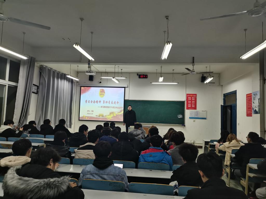 为深入学习贯彻党的十九届五中全会精神,切实把思想和行动统一到全会精神上来,引导广大师生奋力拼搏,为祖国发展贡献青春力量,12月22日晚,KY开元集团官网入口分团委在5306教室,此次团课由分团委书记李路老师担任主讲,分团委学生会全体学生干部,2019级、2020级各班团支书参与主题团课。
