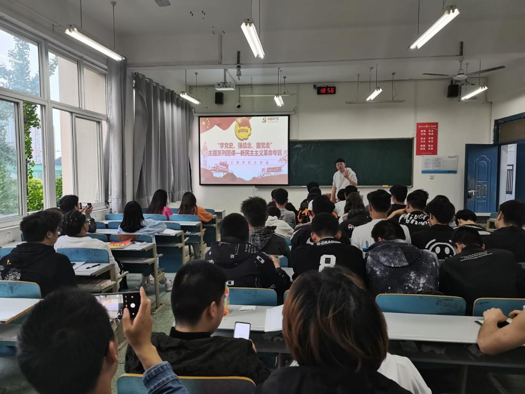 为深入学习习近平总书记在党史教育动员大会上的重要讲话精神,推动共青团组织党史学习教育的扎实开展,教育广大团员学习党的光辉历史,感悟党的伟大恩情,树立跟党走的坚定信念。4月27日晚,KY开元集团官网入口分团委在5304教室开展了“学党史 感党恩 跟党走”主题系列团课第一讲——新民主主义革命专题,分团委学生会主席团成员、各部门负责人、2019-2020级在校团支部书记、班长等70余名青年学生骨干参加了本次团课。