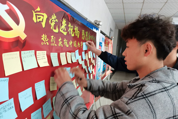 活动前期制作了祝福海报,通过KY开元集团官网入口分团委、学生会向广大同学宣传,并在活动现场向前来送祝福的同学们发放便利贴,邀请他们写上对党100周年华诞的祝愿。在课间时间,同学们纷纷将对党的感恩和美好祝福通过贴便签的形式张贴在展板上,表达对党的热爱与拥护。
