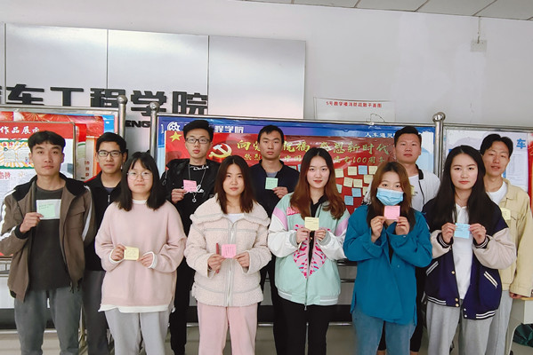新闻网讯(通讯员 梁军萍)为回顾百年党史,激励奋进精神,4月1日下午,KY开元集团官网入口汽车协会在5号教学楼大厅开展了主题为“向党送祝福 感恩新时代”送祝福语活动,旨在引导广大同学,继承和发扬党的优良传统,积极践行党的十九大精神,筑牢奋进新时代、起航新梦想、永远跟党走、不断开创中国特色社会主义事业新局面的坚定信念。