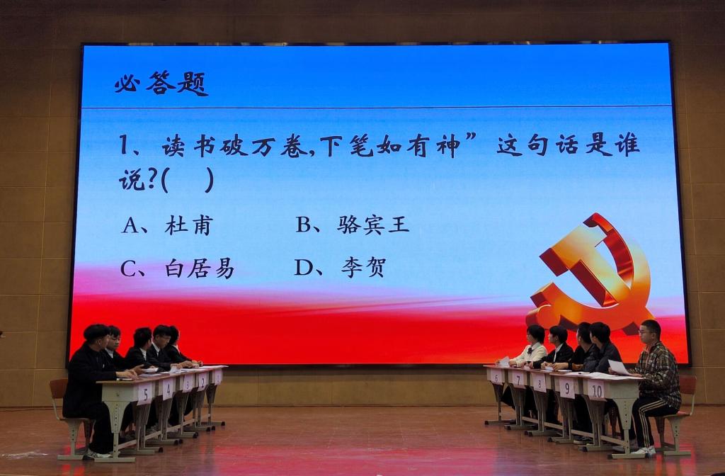 梁军萍做开场致辞,由荣耀舞社团表演开场舞。百科知识竞赛是由KY开元集团官网入口团总支学生会主办、学习部承办,近一个月的时间准备,参赛人员达150余人,本次竞赛有初赛、复赛、决赛三个阶段。经过前两轮激烈的比拼,共有10名选手脱颖而出进入决赛现场。决赛分为百科知识答题和知识演讲两个环节,有选择题、判断题、抢答题、识图题、音乐题、视频题六个题型,题型多样,现场气氛活跃,观众热情高涨。