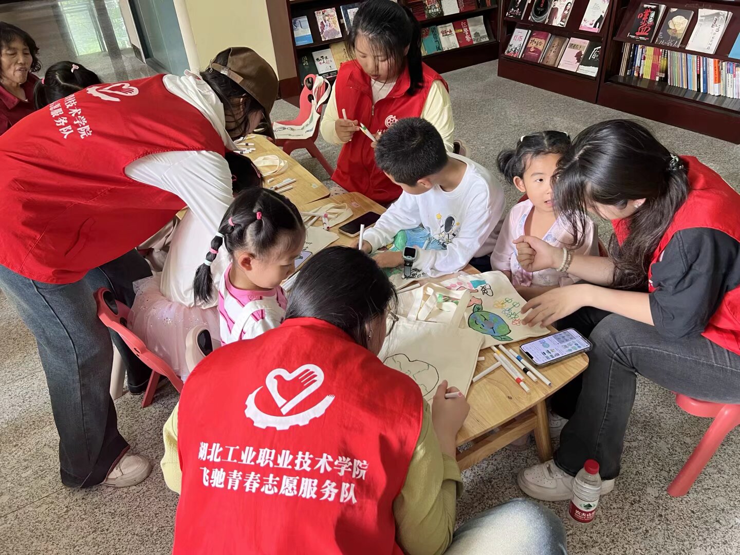 下午2时,活动在孩子们的期待中拉开帷幕。在“我爱地球”环保手提袋创作环节,志愿者们提前准备好白色环保袋与各色绘画工具,引导孩子们用稚嫩笔触描绘心中的绿色家园。原本素净的手提袋被赋予彩虹、绿树、地球等元素,构成了承载环保理念的独特作品。活动第二环节创新引入自然材料再利用。志愿者带领孩子们在社区收集落叶枯枝,通过裁剪彩纸、缠绕丝带等工艺,将一根根不起眼的树枝改造成充满艺术感的花束,并给作品起了“绿色希望”、“自然之美”等动听的名字寓意着对美好环境的向往。垃圾分类互动游戏将气氛推向高潮。志愿者们精心准备了垃圾分类卡片和垃圾分类箱,并为小朋友们详细讲解了垃圾分类知识。在志愿者的引导下,孩子们轮流抽取卡片,将印有不同垃圾图案的卡片投放到对应的分类箱中。这种寓教于乐的互动方式,既调动了孩子们的参与热情,又让他们在游戏中轻松掌握了垃圾分类的正确方法。