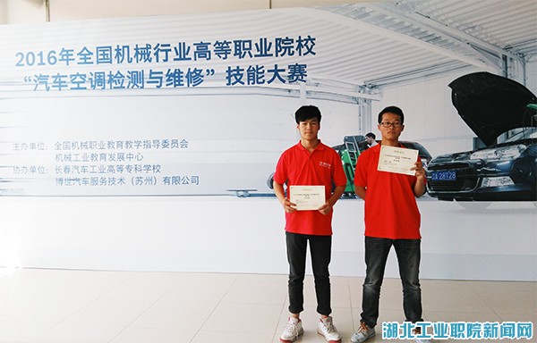 (通讯员 刘德涛 陈林)为进一步探索产教深度融合与发展新机制,搭建竞技与交流平台,提高人才培养质量,6月1日至2日,在长春举办的“2016年全国机械行业高等职业院校‘汽车空调检测与维修’技能大赛”,经过2天激烈角逐,圆满落幕。比赛中,开元官网2名参赛选手——2014级中德实验班王涛、徐浩翔同学以扎实的知识、精湛的技术,在众多参赛队中脱颖而出,获得1个二等奖和1个三等奖,为学院争得了荣誉。